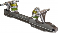 Durable, responsive, and lightweight, the all-new Rival from PowerDyne has been engineered from start to finish by skaters whow know what a plate needs to perform. The Rival is built from extruded aircraft aluminum with an exclusive solid support beam that offers unmatched durability and rigidity for the Reactor-inspired platform. Every corner and angle of the Rival has been analyzed, stress-tested, and refined to reduce weight, increase strength, and improve feel. The attention to detail doesn't stops there as the Rival comes with solid 7075 aluminum kingpins and high rebound urethane cushions for the instant response found in plates that are twice the price of the Rival. Lighter and more powerful than any other plate in its class, the Rival has no equal.